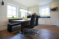- Küche: Voll ausgestattete Küche mit großem Esstisch, Cerankochfeld, Backofen, Mikrowelle, Geschirrspüler, Kühlschrank, Toaster, Kaffeemaschine, Espressomaschine und Senseo-Maschine.